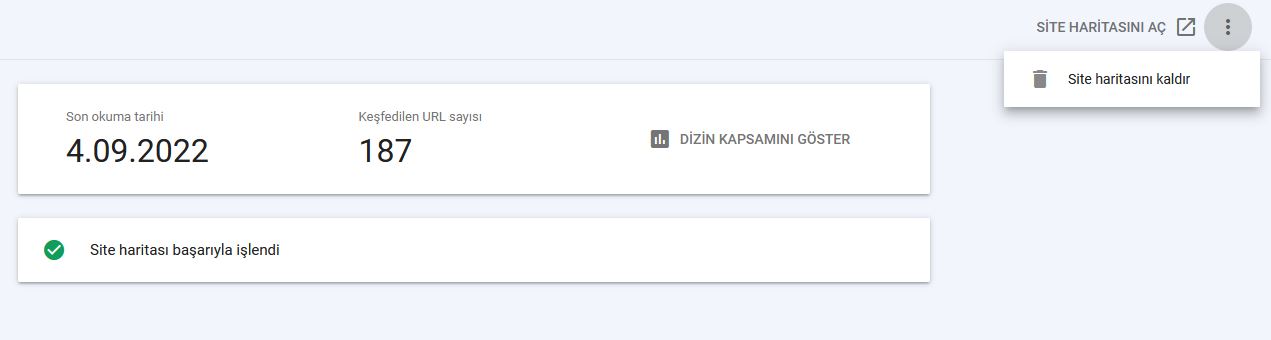 Site haritasının üzerine tıklayın, sonrasında sağ üstte bulunan Site Haritasını Aç sekmesinin yanındaki alana tıklayın. Bu işlemleri yaptığınızda Site Haritası Kaldırma işleminiz tamamlanmış olacaktır.